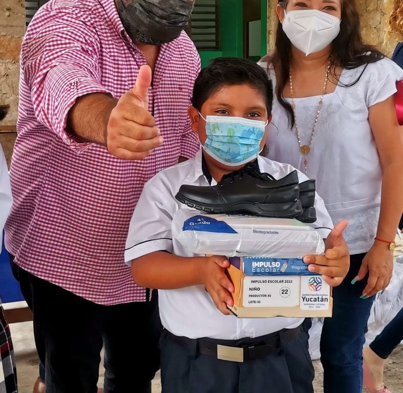 Esta mañana el alcalde de Motul, Roger Aguilar Arroyo, en compañía de su esposa Kelly Sosa Lugo, el diputado Erik Rihani, regidores, autoridades escolares locales y estatales acudieron a las escuela «José María Morelos y Pavón» a la entrega de paquetes del programa Impulso escolar a estudiantes de nuestro municipio.