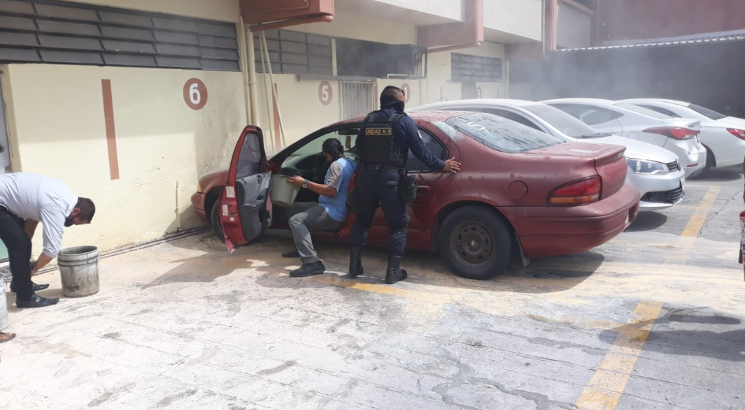 La pronta intervención del personal del estacionamiento, de la Policía Municipal de Mérida y del Honorable Cuerpo de Bomberos impidió mayores afectaciones al vehículo Stratus ZCY-478-B propiedad del señor Francisco Z.L.