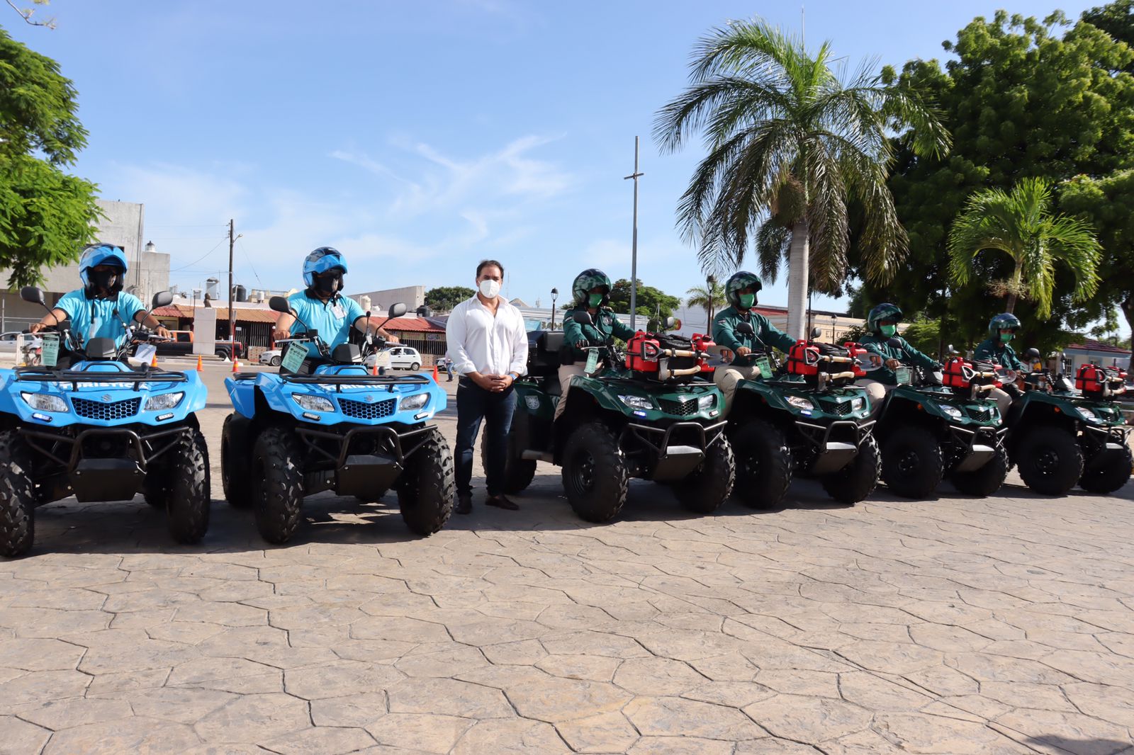 Progreso, Yucatán a 14 de septiembre de 2021.- Con el propósito de no bajar la guardia en materia de seguridad y protección al medio ambiente, esta mañana 6 nuevas unidades automotrices y 20 equipos tácticos fueron entregados de manos del alcalde Julián Zacarías Curi a elementos de la Policía Municipal, Policía Ecológica y la nueva Policía Turística. En ese sentido, Zacarías Curi explicó que las cuatrimotos que operaran la Policía Ecológica tendrán rondines en las siguientes zonas: – Zona Sur: Qué va desde la Zona de la Composta, hasta las comisarías (Flamboyanes, Paraíso, y San Ignacio). – Malecones: Va desde Malecón Tradicional e Internacional. – Calle 58 hasta el Km. 20 límites de la Carretera Uaymitún – Playa Pig, y abarca la comisaría de Chelem hasta el playón de Chuburná, de punta a punta en nuestra franja costera. También, adelantó que estas unidades estarán patrullando en ambos malecones y zonas propensas a actos de contaminación tales como la franja de invasiones, el canal, la periferia que colinda con Chicxulub puerto. Por otra parte, dijo que gracias a las cualidades de estos vehículos podrán acceder a lugares difíciles para brindar mejor atención y traslado a especies pequeñas. Asimismo, recalcó que el cuidado al medio ambiente en esta administración es primordial, por lo que se implementarán distintas acciones como las sanciones a los habitantes y turistas que no acaten las normas, pues es hora de que todos cuiden Progreso, por lo que ahora se contará con vigilancia permanente. «En estos tres años que vienen vamos a trabajar contundentemente para poner mano dura a quienes estén dañando nuestros manglares” Expresó Zacarías Curi Con respecto a la policía turística, dio instrucciones para que las unidades se encarguen de reforzar la seguridad y vigilar el tramo que abarca el malecón tradicional, así como asistir y orientar a paseantes que visiten el puerto. “Equipamos a la Policía Turística con 2 cuatrimotos, las cuales a partir de hoy estarán en los malecones cuidando de los progreseños y visitantes”, comentó Por su parte, el edil dijo que la entrega del equipo antidisturbios para la dirección de seguridad pública y tránsito surge como resultado del trabajo y gestiones realizadas ante el Gobierno del Estado a través de la secretaria de Seguridad Publica. La entrega al equipo constó de 20 unidades de guantes, gogles, juegos de coderas y rodilleras, escudos de contención, cascos antimotines, pecheras, espinilleras, molde de cadera, protector de genitales, por mencionar algunos artículos.