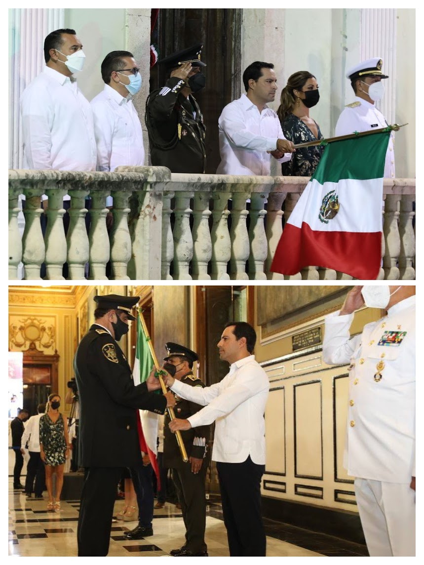 “¡Mexicanos, viva la independencia nacional!, ¡Vivan los héroes que nos dieron patria!, ¡Viva Hidalgo!, ¡Viva Morelos!, ¡Viva Guerrero!, ¡Viva Josefa Ortiz de Domínguez!, ¡Viva Yucatán!, ¡Viva la soberanía nacional!, ¡Viva México, viva México, viva México!”, expresó el Gobernador para posteriormente ondear la bandera mexicana e hizo repicar la campana.