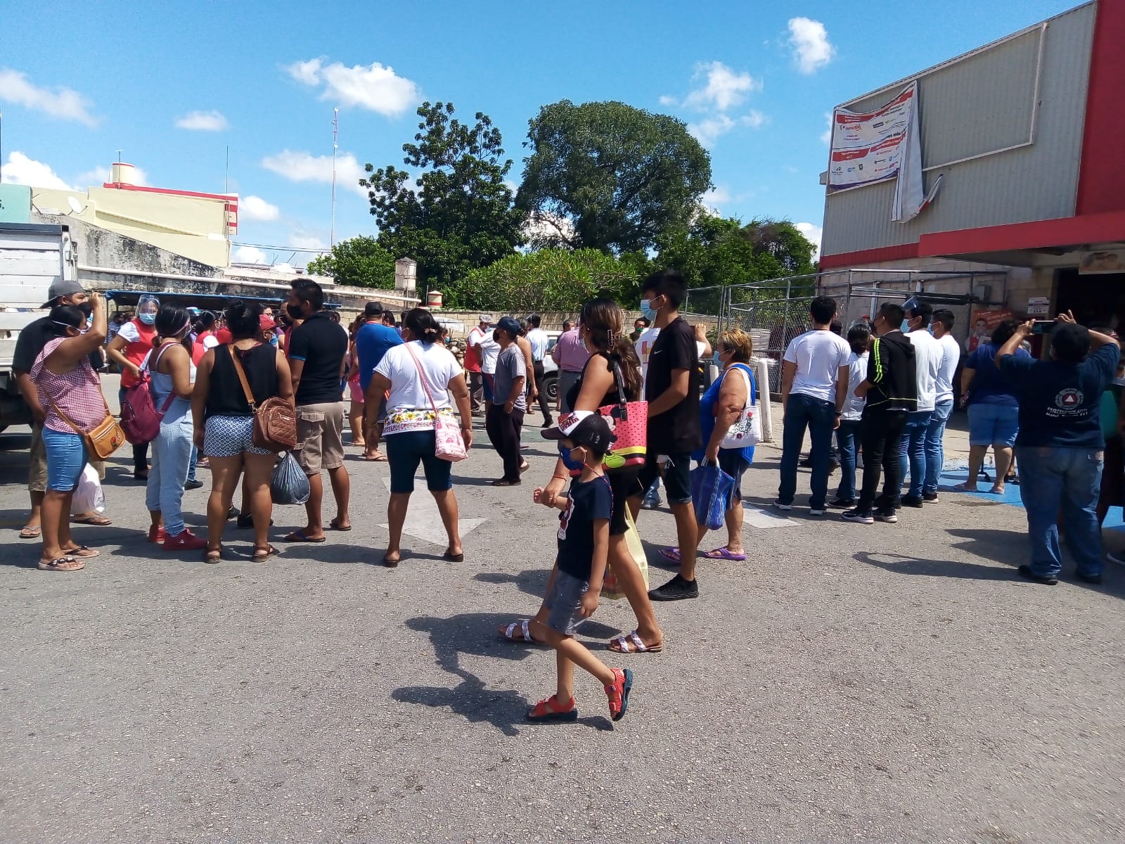 Con una buena coordinación, la brigada de protección civil acudió a dos de los supermercados más conocidos de Motul para apoyar en la evacuación de los trabajadores y clientes que participaron en el segundo simulacro nacional.
