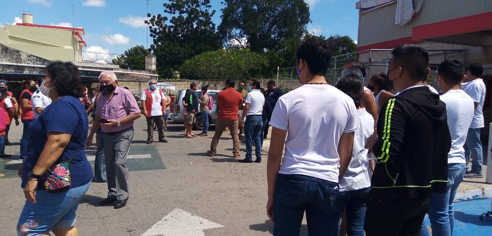 Con una buena coordinación, la brigada de protección civil acudió a dos de los supermercados más conocidos de Motul para apoyar en la evacuación de los trabajadores y clientes que participaron en el segundo simulacro nacional.