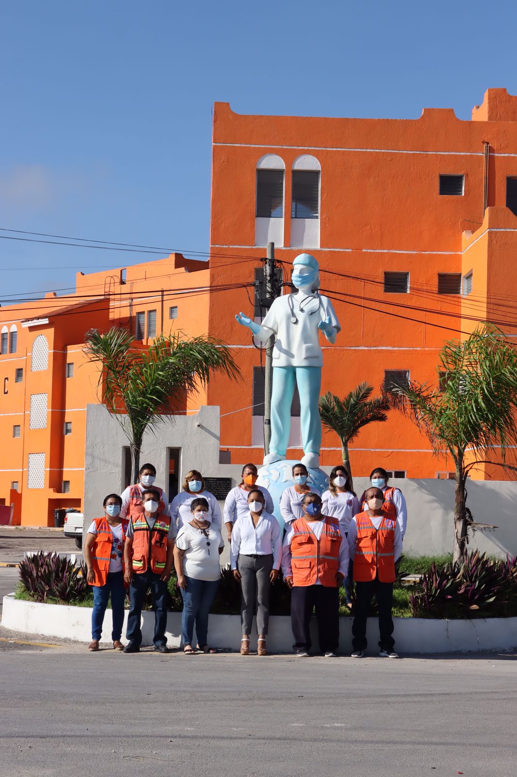 Progreso, Yucatán a 19 de septiembre de 2021,- Esta mañana en representación del alcalde Julián Zacarías Curi, la directora de salud, Harly Vanesa Alcalá Díaz asistió a la guardia de Honor en el nuevo monumento a la salud en Yucalpetén, para conmemorar el Día Nacional de Protección Civil.