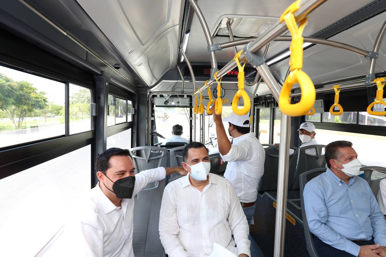 Asimismo, Vila Dosal pudo constatar que estos autobuses son incluyentes, con entradas más bajas que permiten accesibilidad universal, espacios especiales y más cómodas para los usuarios en silla de ruedas y racks para llevar bicicletas.