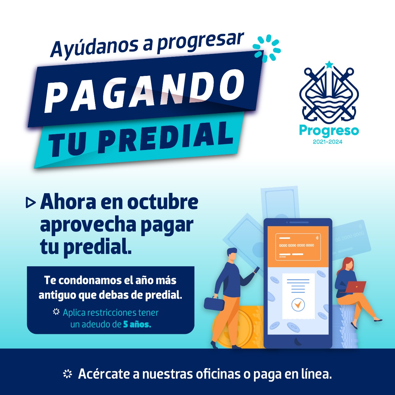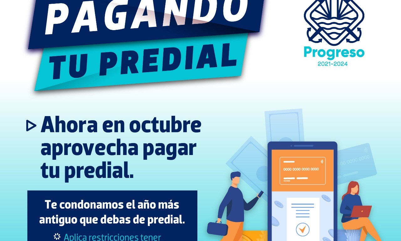 Progreso, Yucatán a 25 de septiembre de 2021.- El alcalde, Julián Zacarías Curi a través de la Dirección Municipal de Tesorería y Finanzas, hace un llamado a la ciudadanía para que este mes de octubre aprovechen los beneficios del programa “Ayúdanos a progresar, pagando tu predial”