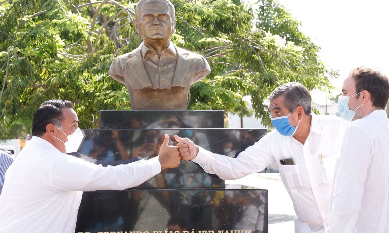 Mérida, Yucatán a 26 de septiembre de 2021.- El alcalde Renán Barrera Concha acompañado por la comunidad libanesa develaron esta mañana el busto en honor al Dr. Fernando Elías Dájer Nahum, cuyo nombre lleva la Avenida 1-H de la colonia México Norte, como un reconocimiento por el ímpetu y dedicación a su profesión.