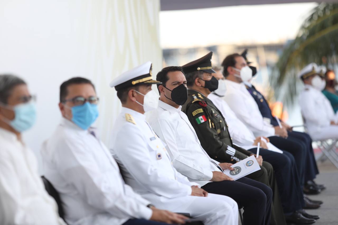 “Somos una institución que proviene del pueblo mexicano, al cual nos debemos y al cual servimos. De esta forma, refrendo el compromiso de cumplir con la misión. Con un enorme amor a México, los marinos navales hemos estado y estaremos a favor de las mejores causas de la nación: unidad, honradez, paz, seguridad y bienestar social. Exalto nuestro orgullo y gran honor por formar parte de la historia de nuestra institución, y a la vez expreso nuestro deseo de que podamos cumplir dos siglos más. Siempre comprometidos con la nación, y en nuestro caso en particular, con la sociedad yucateca. Empeñados en trabajar para servir a México”, concluyó.