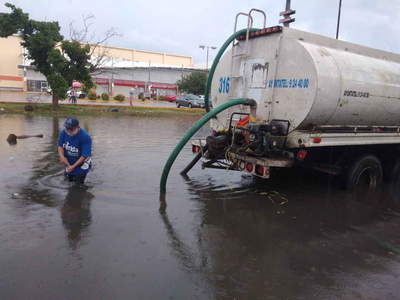 Mérida, Yucatán, a 5 de octubre de 2021.- El Ayuntamiento de Mérida, a través de la Dirección de Servicios Públicos Municipales, implementó un operativo extraordinario en la zona Poniente de la ciudad, para atender los reportes de vialidades inundadas por las copiosas lluvias de esta tarde.