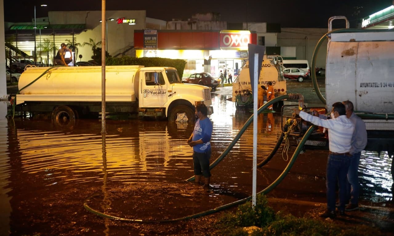 Mérida, Yucatán, a 5 de octubre de 2021.- El Ayuntamiento de Mérida, a través de la Dirección de Servicios Públicos Municipales, implementó un operativo extraordinario en la zona Poniente de la ciudad, para atender los reportes de vialidades inundadas por las copiosas lluvias de esta tarde.