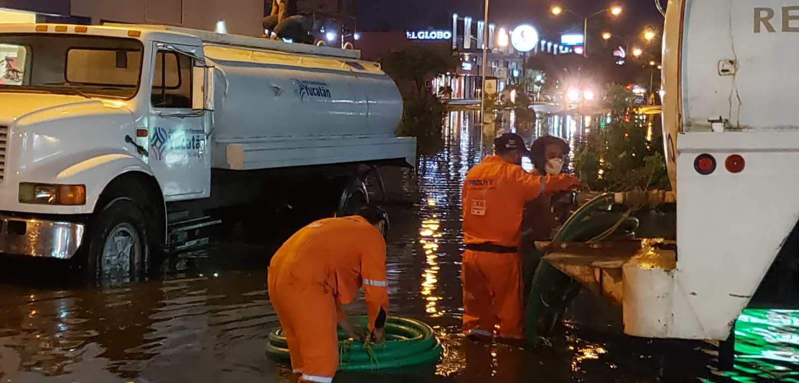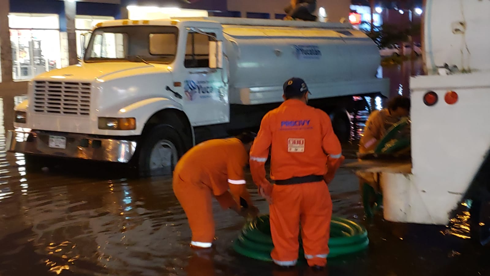 Mérida, Yucatán, 5 de octubre 2021.- Como respuesta concertada e inmediata a las fuertes lluvias acaecidas, sobre todo en el poniente de esta ciudad, la Coordinación Estatal de Protección Civil (Procivy) dispuso personal y pipas, para labores de absorción y desazolve, en avenidas y áreas comerciales.