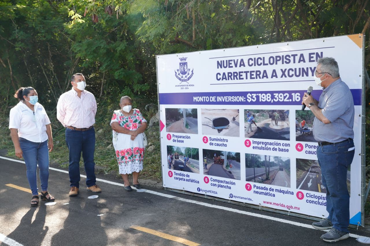 En el marco de la puesta en marcha de esta ciclovía, el Alcalde, junto con las autoridades municipales y vecinos de ambas comisarías, recorrieron en bicicleta una distancia aproximada de 1.6 kilómetros, desde la entrada de la comisaría Santa María Yaxché, hasta la población de Xcunyá.