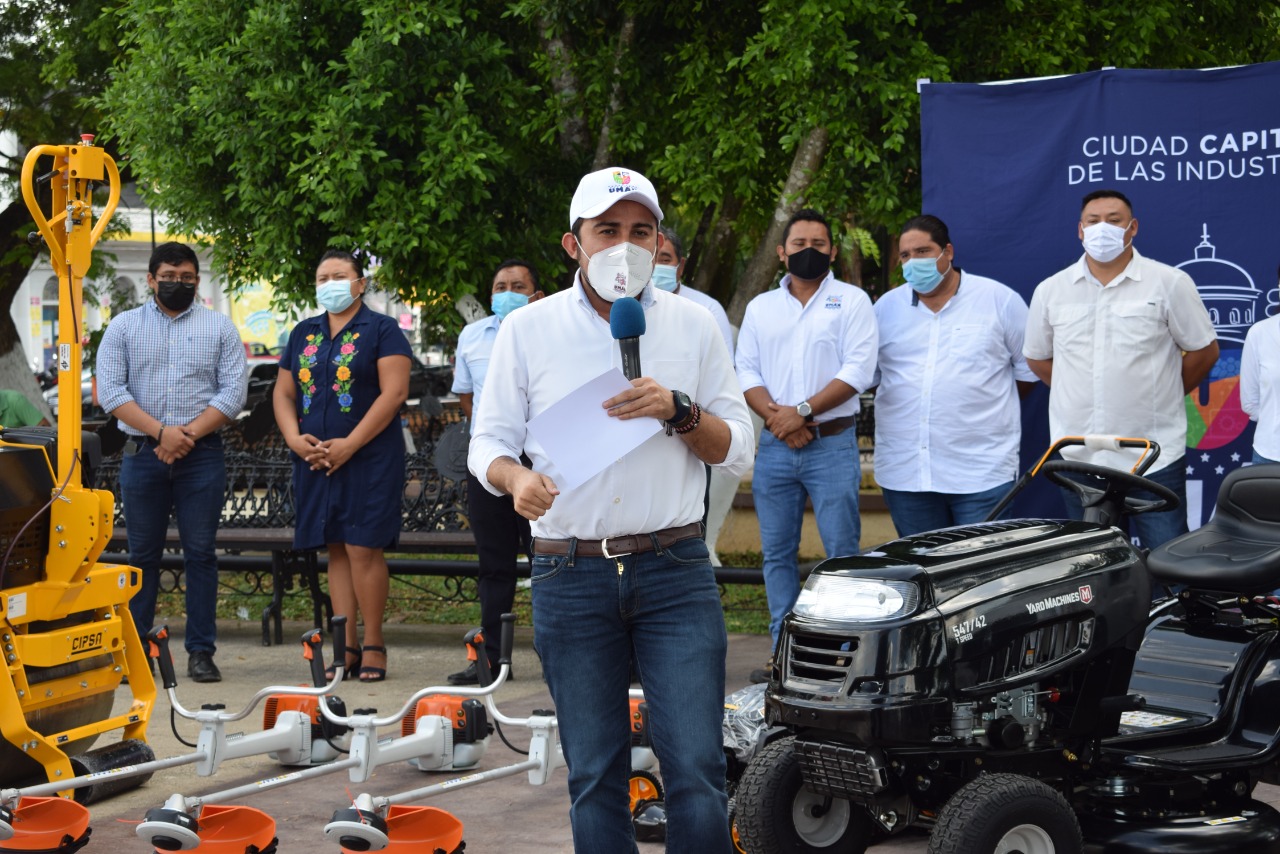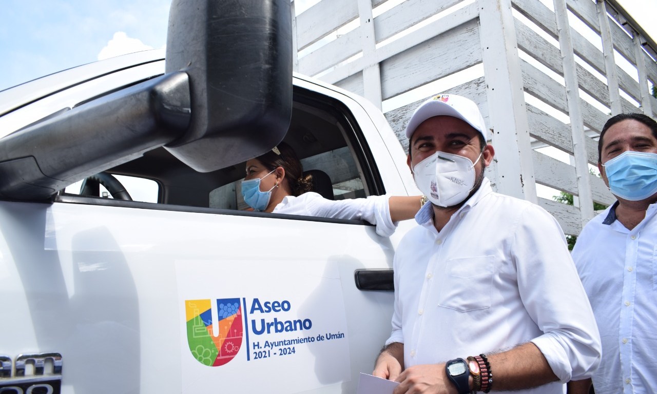 Con maquinaria, equipo de transporte y aparatos de limpieza para las Direcciones de Desarrollo Urbano y Obras Públicas, Servicios Públicos Municipales y Deportes y Cultura Física del Ayuntamiento con el objetivo de que puedan desarrollar sus labores de manera satisfactoria, el Presidente Municipal de Umán, Dr. Gaspar Ventura Cisneros Polanco fortalece los “brazos” del Ayuntamiento para mejorar los servicios de los ciudadanos.