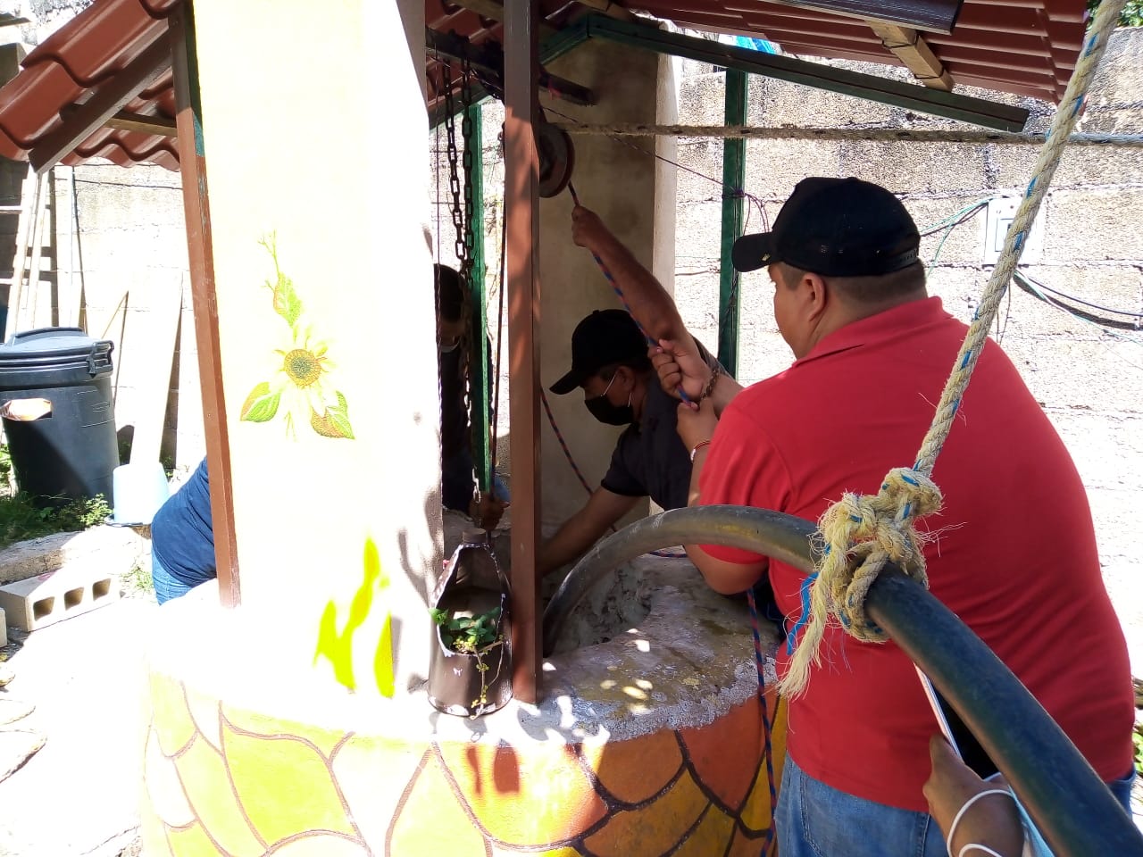 La brigada de Protección Civil al mando de Magdalena Lara Guerra, se movilizó al lugar de los hechos donde con una polea en la boca del pozo se introdujo una persona para el rescate.