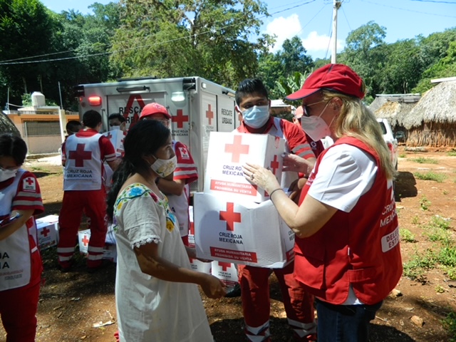 Tekax, Yucatán, 14 de octubre de 2021.- Voluntarios de Cruz Roja Mexicana Delegación Yucatán distribuyeron ayuda humanitaria en comisarías de Tekax como parte de las actividades de asistencia social a poblaciones vulnerables.