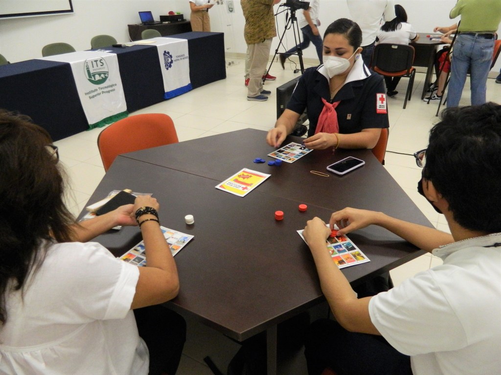 Progreso, Yucatán, 15 de octubre de 2021.- Esta mañana se realizó la presentación y entrega del tradicional juego de la “Lotería Progreseña” a la Cruz Roja Mexicana Delegación Progreso, proyecto elaborado por alumnos del Instituto Tecnológico Superior de Progreso (ITS), y cuyo objetivo es promover el trabajo que realizan los jóvenes y al mismo tiempo promocionar los atractivos turísticos con los que cuenta la ciudad.