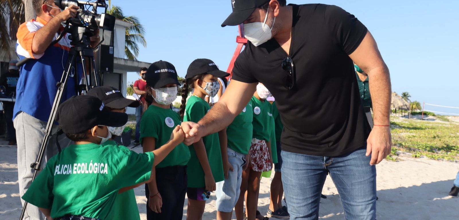 También, se contó con la presencia del regidor, Herbert Pech Baquedano, y del director de la Policía Ecológica, Obdulio Delaney Mena Sánchez, quienes felicitaron a los niños por unirse a esta iniciativa.
