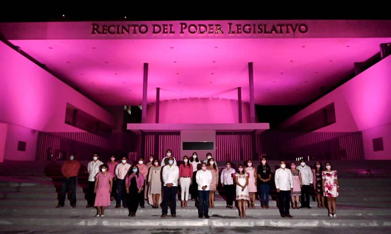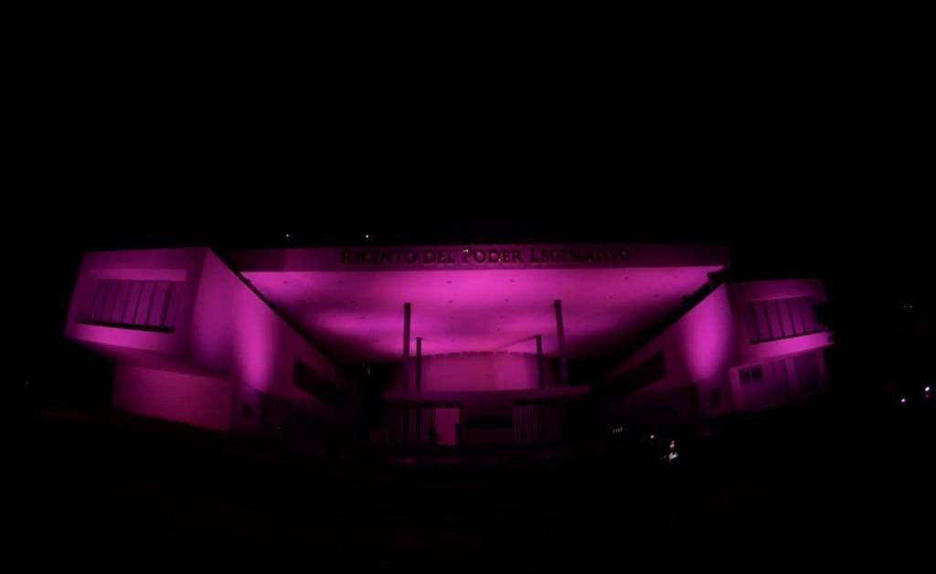 Como parte de las acciones de sensibilización para la prevención, detección y atención oportuna del Cáncer de Mama, el recinto del Poder Legislativo se iluminó de rosa, en conmemoración del Día Internacional de la Lucha contra esta enfermedad, que se efectúa cada 19 de octubre.