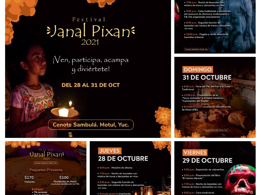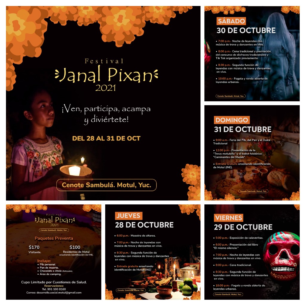 En H. Ayuntamiento de Motul invita a todo el público en general a disfrutar el festival de Janal Pixan 2021, a partir del jueves 28 al domingo 31 de octubre en nuestro cenote Sambulá.