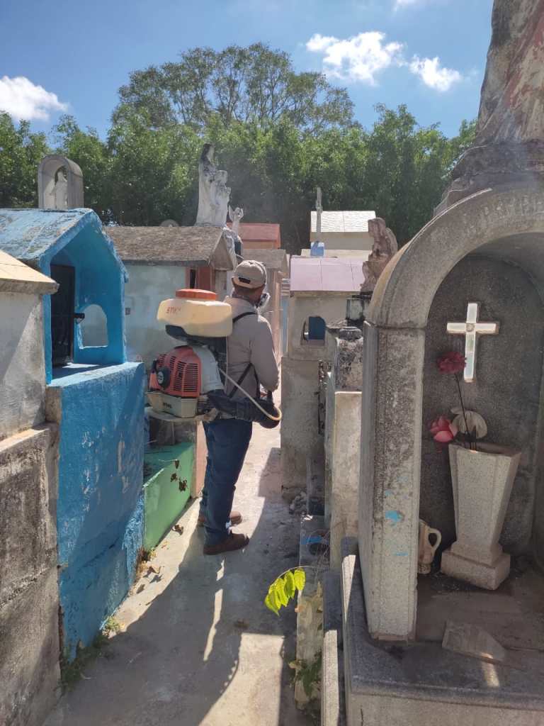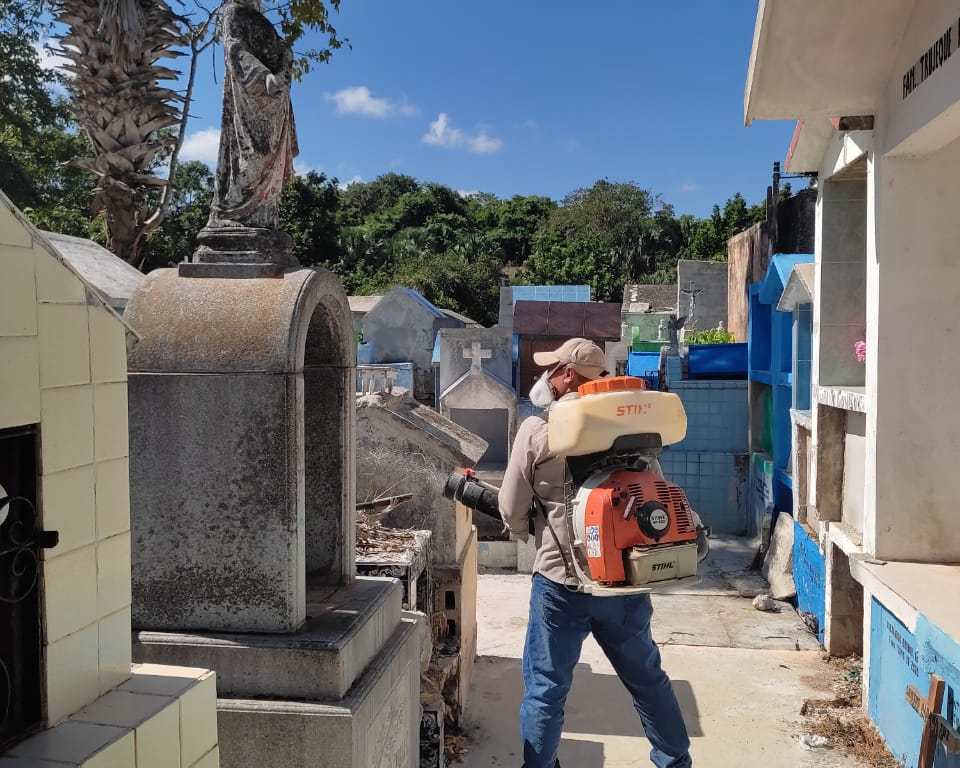 Mérida, Yucatán, 22 de octubre de 2021.- Para garantizar el bienestar de la población que, en estas fechas, acude a panteones y cementerios, el Gobernador Mauricio Vila Dosal y el titular de la Secretaría de Salud (SSY), Mauricio Sauri Vivas, instruyeron ejecutar un plan de fumigación en toda la entidad.