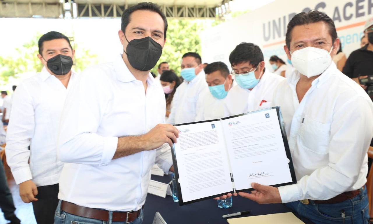 En el marco de la firma de un convenio de colaboración entre los 105 municipios del interior del estado y las Secretarías de Salud (SSY) y de Desarrollo social (Sedesol) para la ejecución de este esquema, el Gobernador también informó que este año se estará sustituyendo, con nuevas unidades, los 150 vehículos de traslado que se distribuyeron a todos los municipios al inicio de su administración.