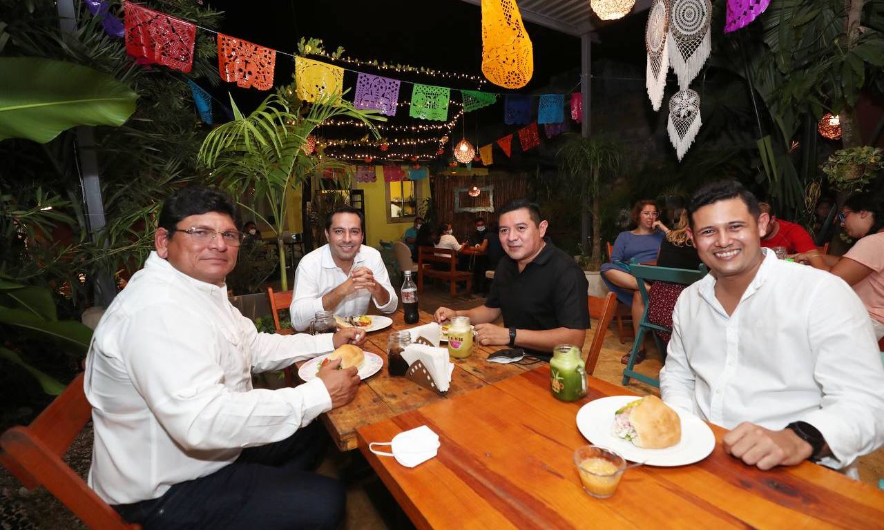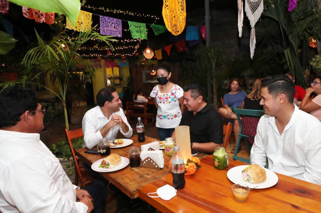 Previo a descansar en esta demarcación del oriente del estado, el Gobernador, junto con el alcalde anfitrión, Alfredo Fernández Arceo, y el titular de la Secretaría de Desarrollo Social (Sedesol), Roger Torres Peniche, acudió a la lonchería Olich, ubicada en el centro de esta ciudad colonial, donde degustó la especialidad de la casa, un torpanucho de huevo con lomitos de Valladolid, que es una telera con un panucho crujiente adentro, y ofrece una combinación entre suave y crujiente.