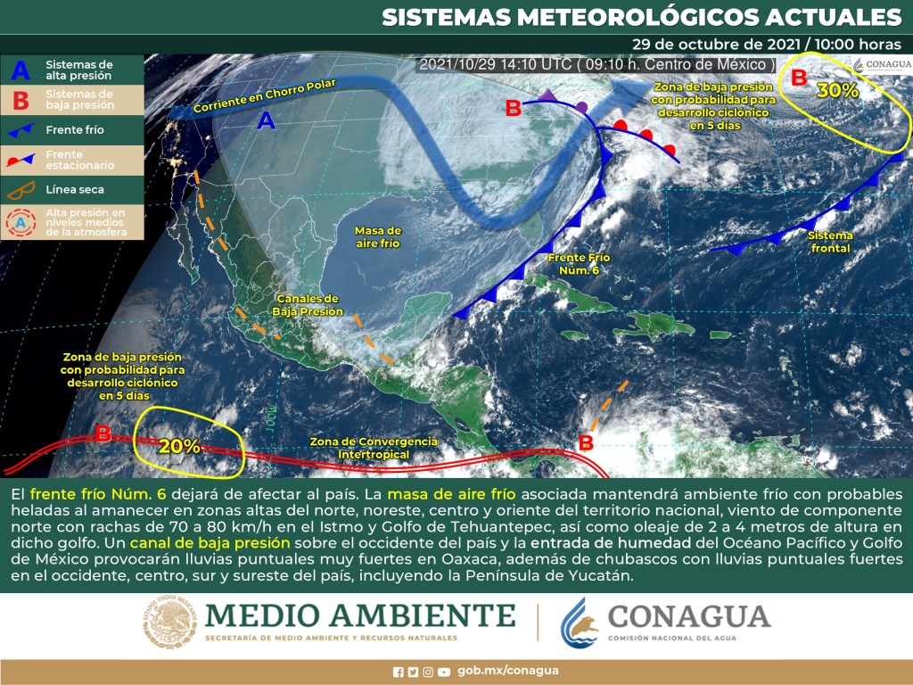 Se prevé que en las próximas horas, la masa de aire frío domine el golfo de México y la península de Yucatán