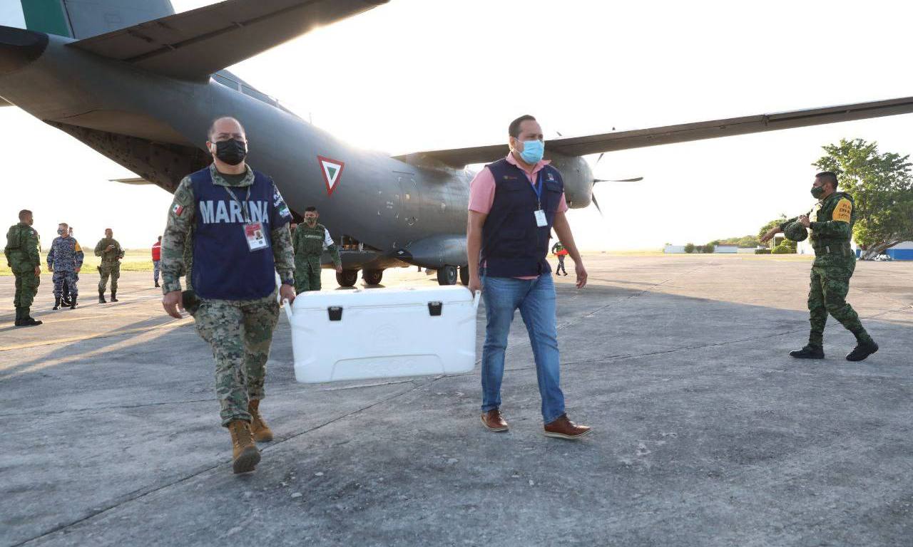 Acompañado del director general del Centro Nacional de Programas Preventivos y Control de Enfermedades del Gobierno de México, Ruy López Ridaura, y del coordinador estatal para la Vacunación Covid-19, capitán de Corbeta Carlos Gómez Montes de Oca, Sauri Vivas constató la descarga del lote, a cargo del personal del Ejército, el cual fue colocado en un camión thermoking de la SSY, para luego ser trasladadas al almacén estatal, desde donde se distribuirán a los lugares en que se aplicarán.