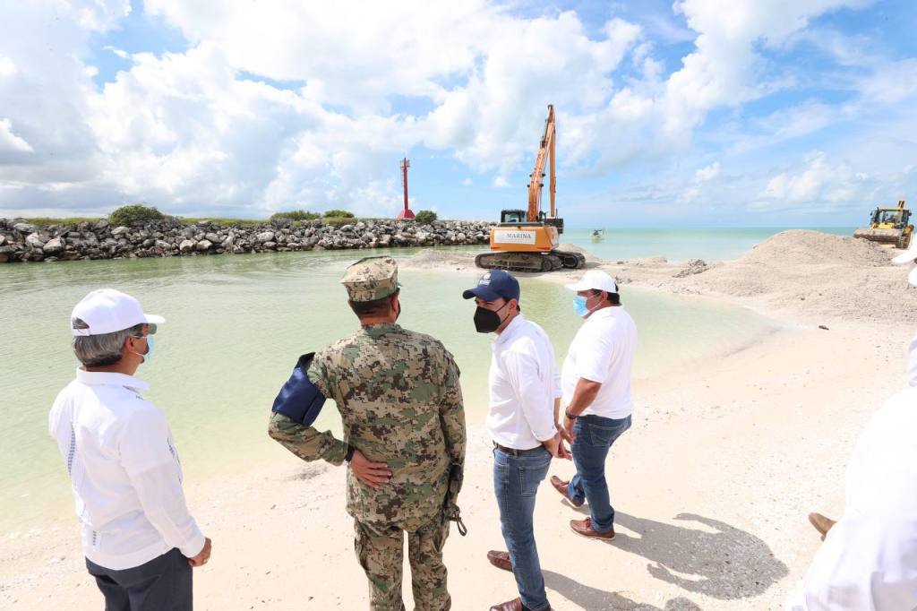 Junto con el comandante de la IX Zona Naval, vicealmirante Adrián Hermilo Valle González, y el director de la Administración Portuaria Integral de Progreso, almirante en retiro Jorge Carlos Tobilla Rodrígez, Vila Dosal constató las labores, que se llevan a cabo con maquinaria pesada de la Secretaría de Marina (Semar), en coordinación con el Gobierno del Estado.