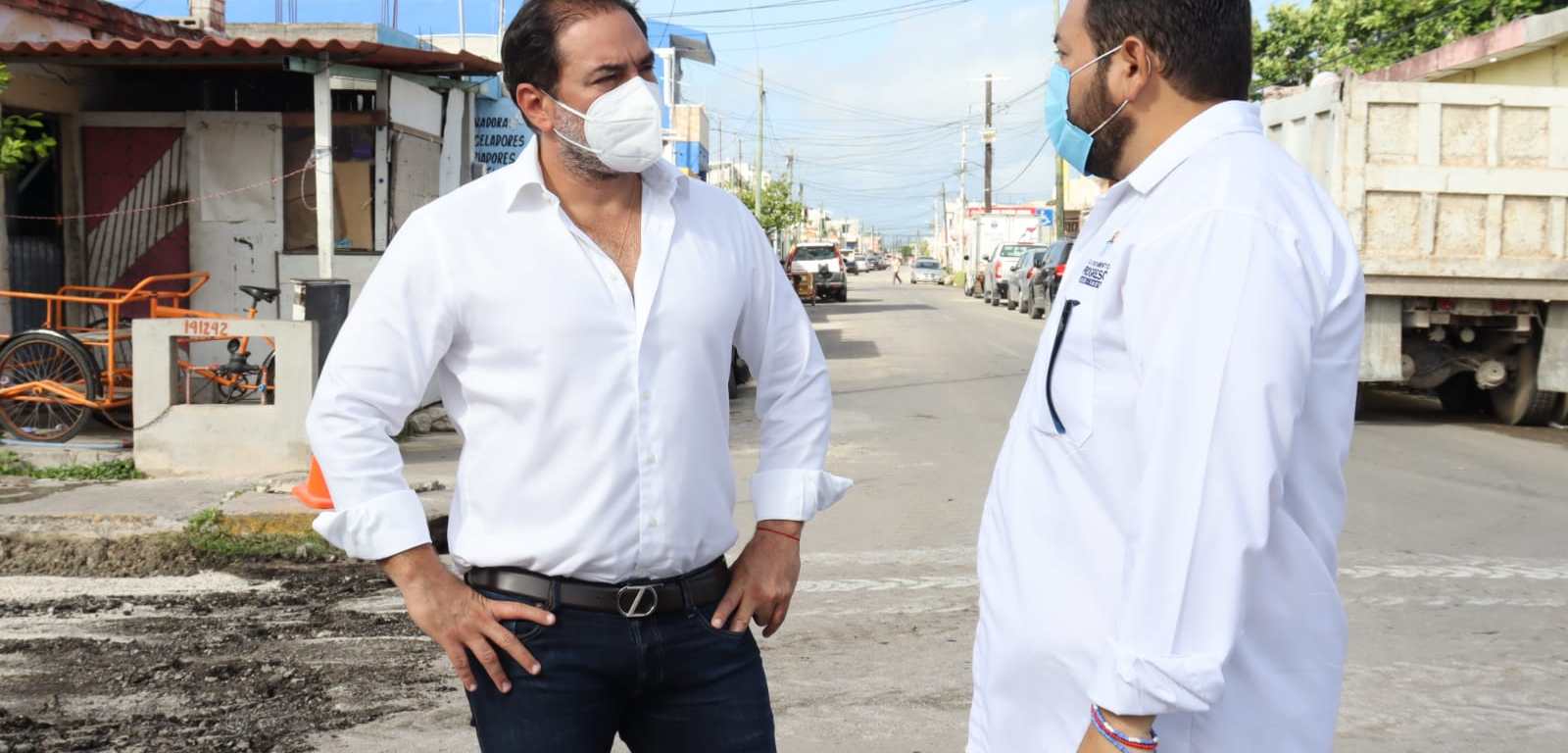 Progreso Yucatán a 2 de noviembre 2021.- El alcalde Julián Zacarías Curi supervisó la escarificación, acamellonamiento, y desalojo de la calle 90 x 39 acompañado del Director de Obras Públicas, Luis Castro Naal.