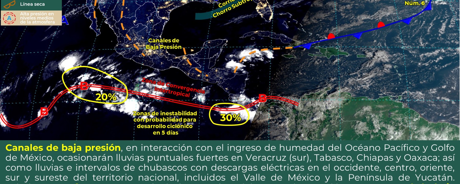 Quintana Roo, así como en el sur de Campeche, mientras que para el resto de la región no se esperan lluvias.