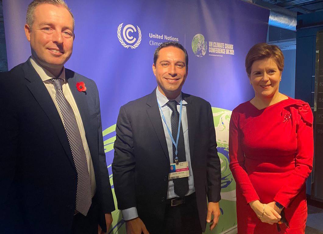 -En el marco de la COP26, Vila Dosal estuvo presente en esta reunión junto con la Primera Ministra de Escocia, Nicola Sturgeon y los Primeros Ministros de Irlanda del Norte, Paul Givan, de Gales, Mark Drakeford y de Vietnam, Pham Minh Chính.