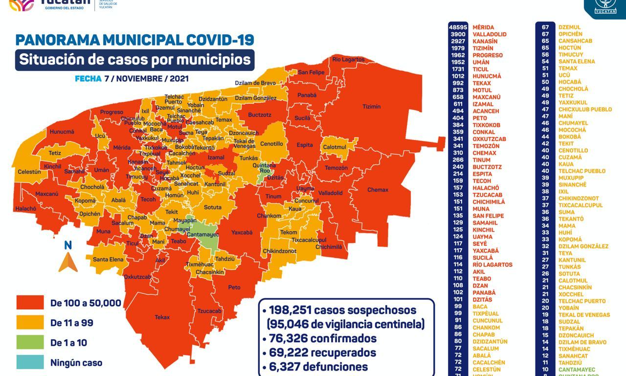 Específicamente, en Mérida se han diagnosticado 46,504 personas contagiadas de Coronavirus (casos acumulados al 6 de noviembre), que viven en: