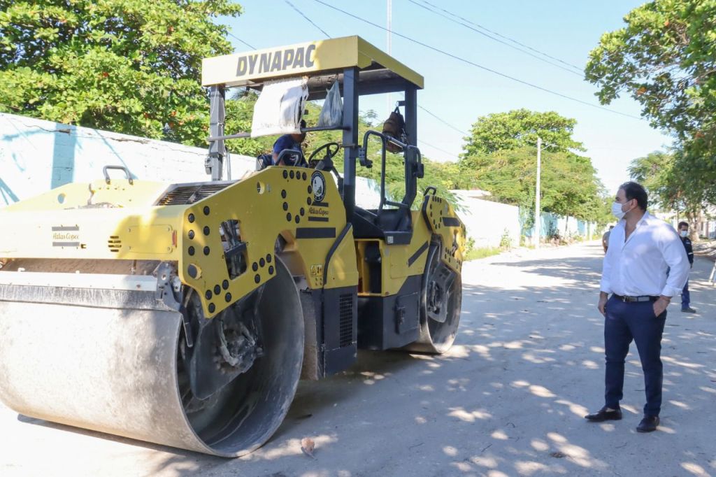 Progreso, Yucatán a 8 noviembre 2021.- Por indicaciones del Alcalde Municipal Julián Zacarías Curi de continuar trabajando en los reportes que le llegan por parte de la Ciudadanía, está mañana iniciaron trabajos de la primera fase que consta de compactación de la base hidráulica y los desniveles para la construcción de pozos de drenaje pluvial en la calle 20 entre 29 y 33 de la colonia Benito Juárez, con la finalidad de evitar encharcamientos en arterias de este puerto.