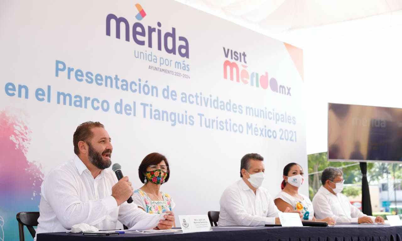 En el marco de la edición 45 del Tianguis Turístico México 2021, que se efectuará en Mérida del 16 al 19 del presente mes, el Ayuntamiento de Mérida ofreció una rueda de prensa donde presentó el programa de actividades contempladas para impulsar la promoción y comercialización de productos y servicios turísticos locales.
