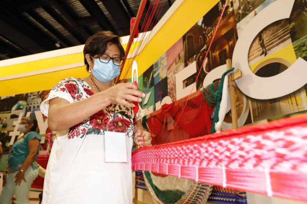 Indicó que la asistencia de los CDI del Ayuntamiento de Mérida al Tianguis Turístico se concretó con la invitación de la empresa Metáfora Producciones Mid, quienes al conocer la calidad del trabajo de estas alumnas del taller de urdido de hamaca, solicitó presentaran una demostración permanente en este evento internacional.