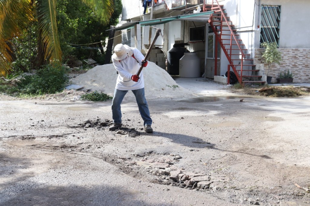 Durante esta Jornada de trabajo en la Colonia Revolución, se realizaron las acciones de bacheo, limpieza de calles, poda, deshierbe y limpieza del mangle.