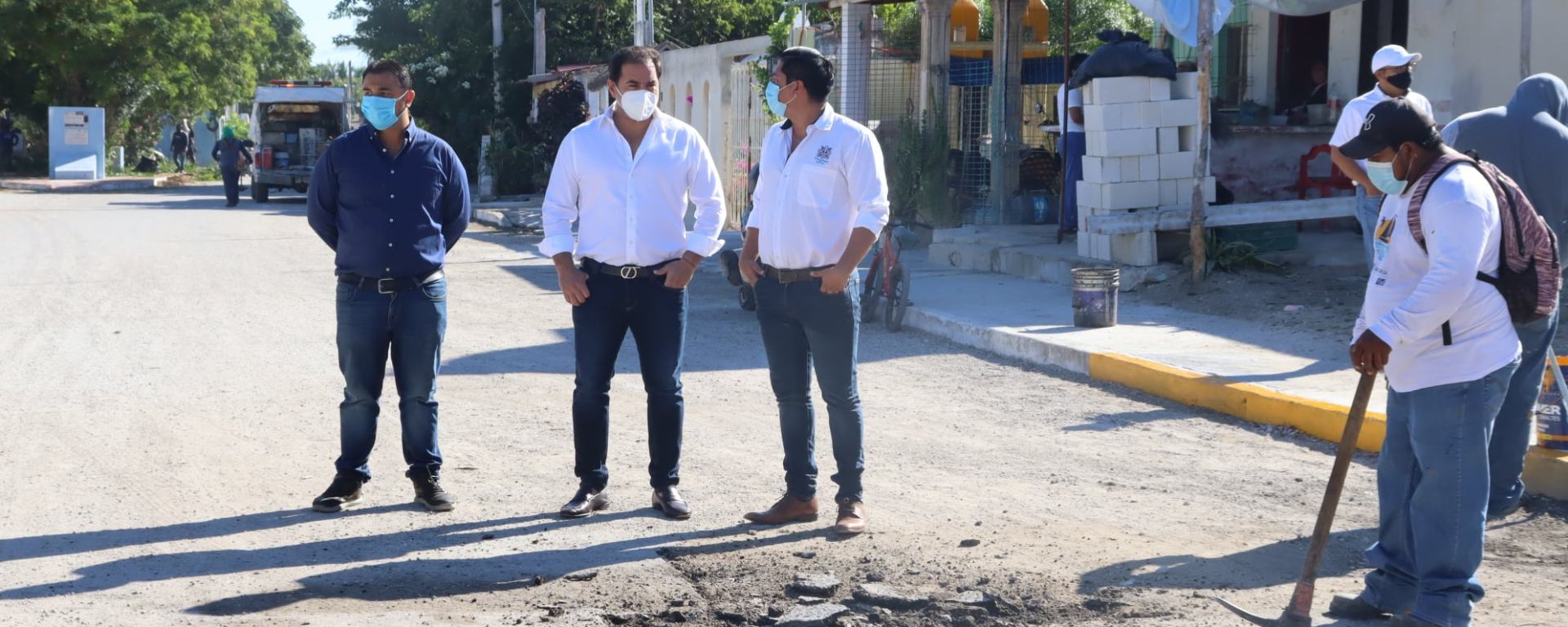 Progreso, Yucatán a 25 noviembre 2021.- Esta mañana, el alcalde Julián Zacarías acudió a los inicios de los trabajos de bacheo que se realizan en la Comisaría de Chelem, acompañado del Director de Servicios Públicos, Canan Ortegón Góngora, y el Subdirector Julio Navarro Arguelles.
