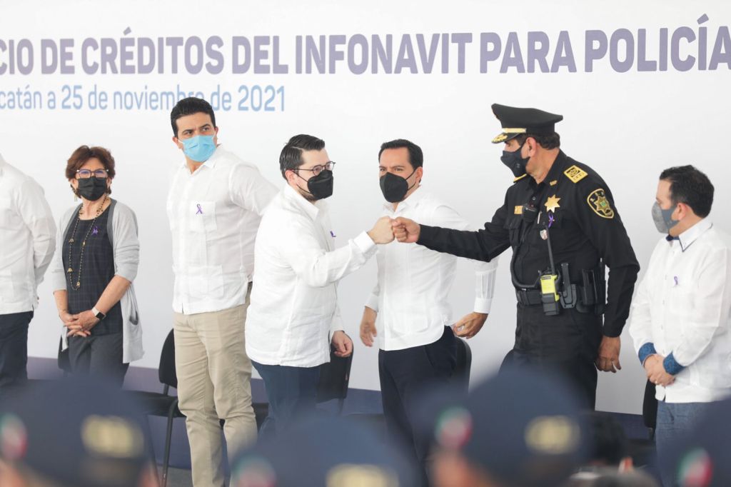 Mérida, Yucatán, a 25 de noviembre de 2021.- Con los objetivos de atender las necesidades de vivienda de poblaciones previamente excluidas y de impulsar la economía del sureste de México, el Instituto del Fondo Nacional de la Vivienda para los Trabajadores (Infonavit) lanzó un nuevo esquema de Crédito Tradicional B para que policías estatales de Yucatán puedan adquirir una vivienda nueva o existente de cualquier valor.