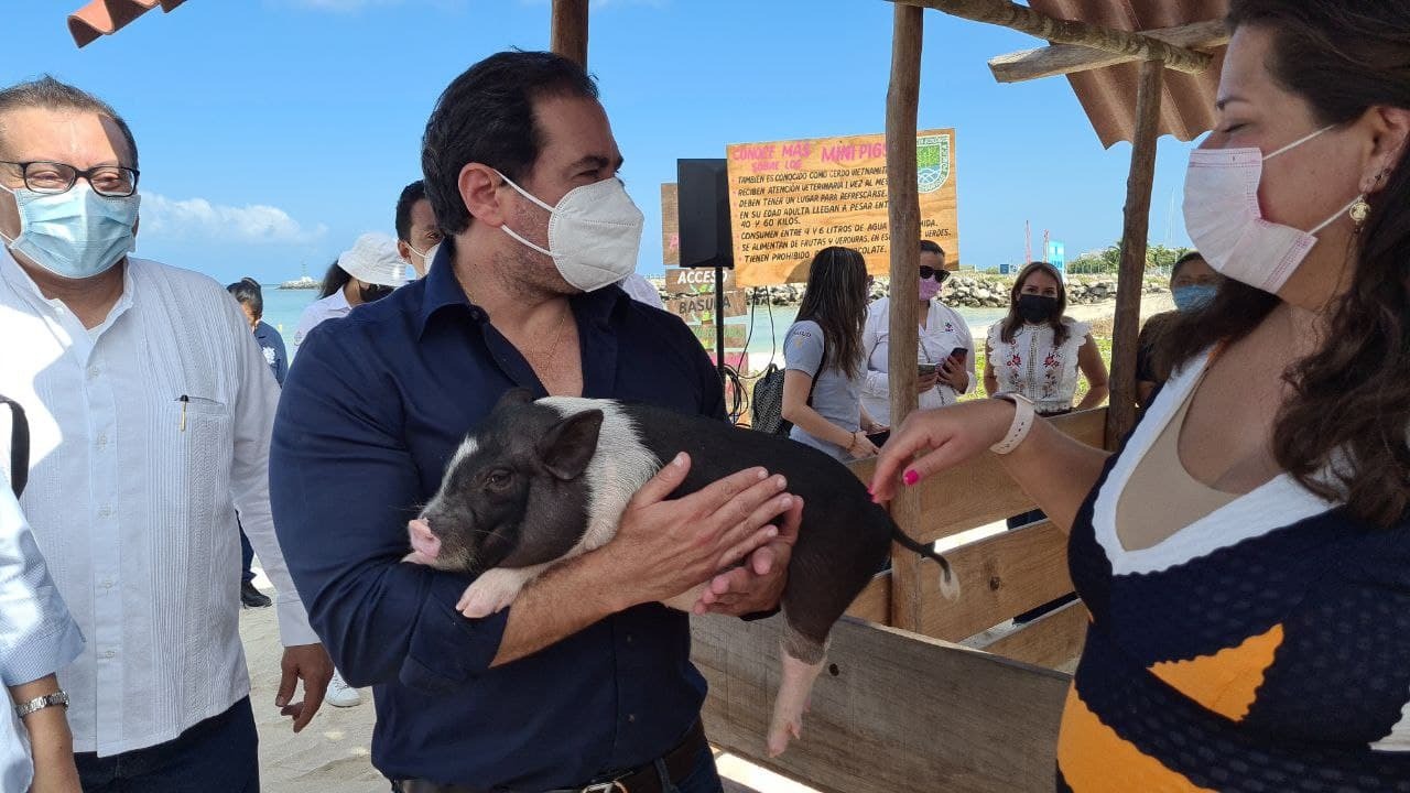 Luego de recibir el reconocimiento, el edil y las autoridades estatales realizaron un breve recorrido por la playa, para luego acercarse a conocer a los cerditos vietnamitas que son el atractivo principal de esta playa.