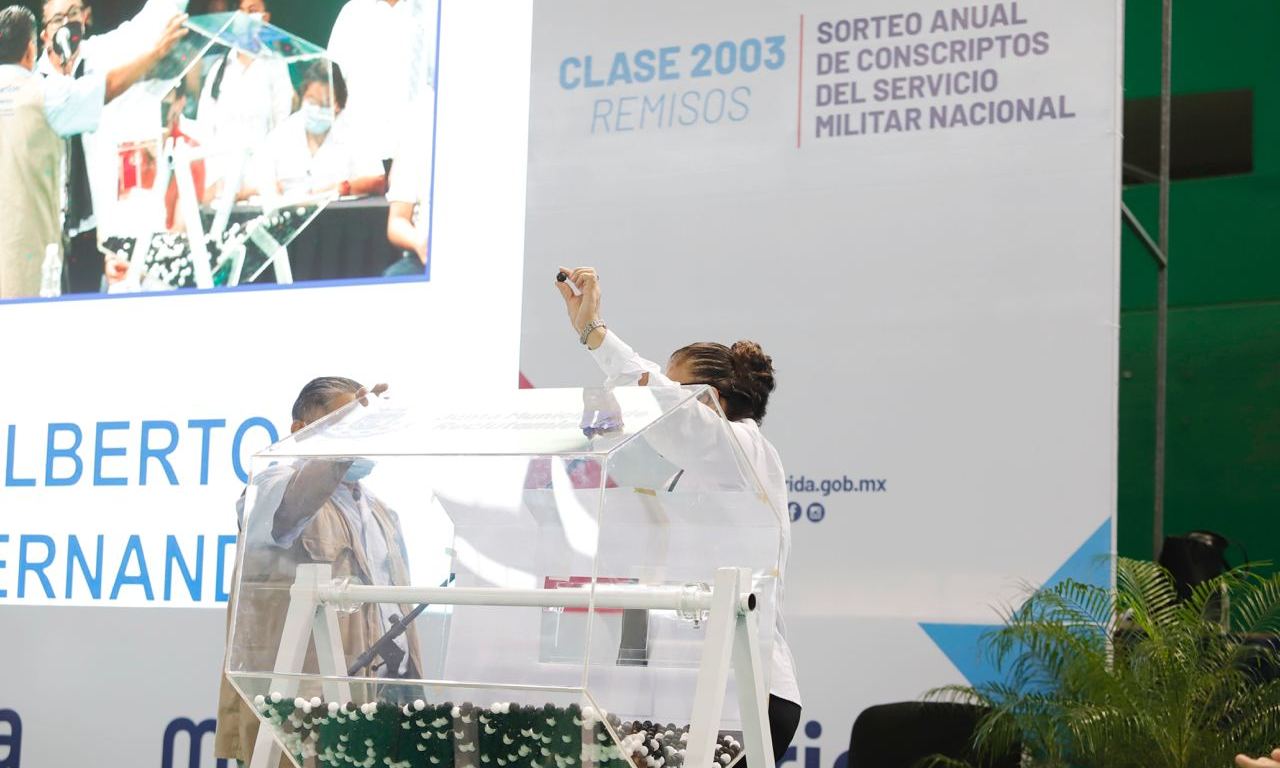 Mérida, Yucatán a 28 de noviembre de 2021.- Realizar el servicio militar es un compromiso cívico que permite contribuir al mejoramiento de la sociedad y a cultivar valores como la lealtad, la disciplina y el carácter, que nos ayudan a ser ciudadanos de bien, manifestó el Secretario Municipal, Alejandro Ruz Castro, al encabezar, en representación del alcalde Renán Barrera Concha, el sorteo anual de conscriptos Clase 2003 y Remisos del Servicio Militar.