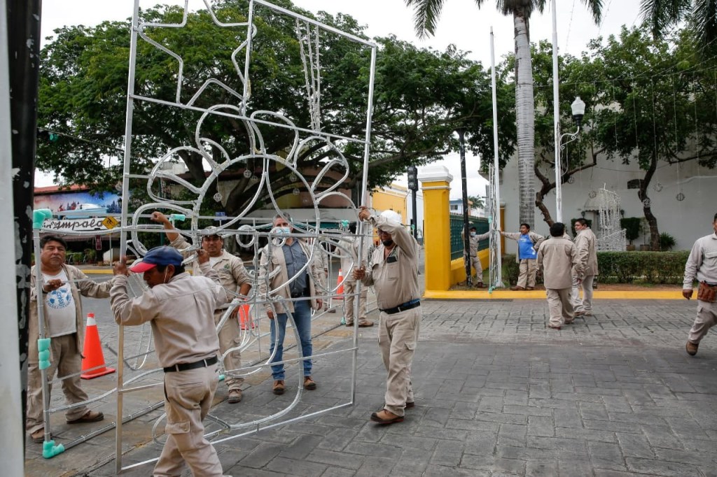Primero con la colocación de los adornos en las glorietas, la Comuna meridana concluyó esta segunda fase de la decoración navideña con las últimas pruebas de la decoración e iluminación en diversos puntos de la ciudad.