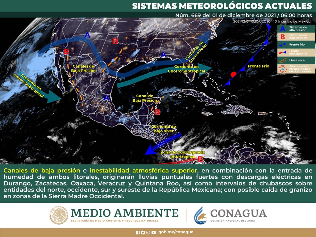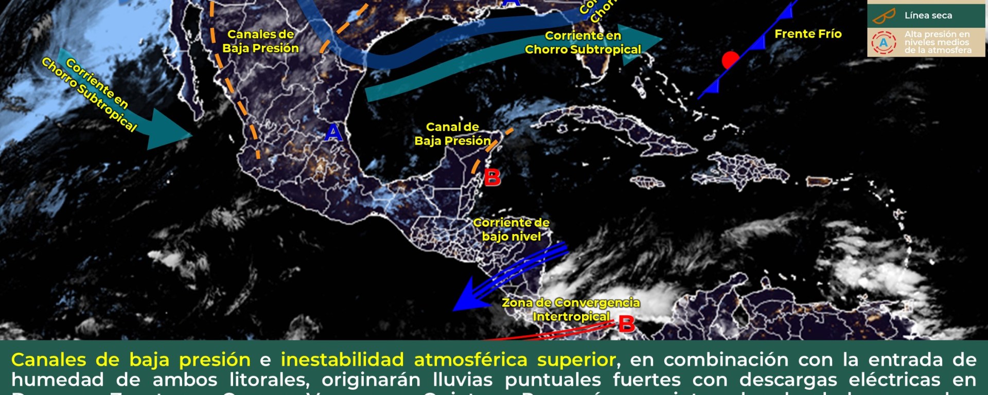 con el establecimiento de un canal de bajas presiones sobre el oriente de la península de Yucatán, ocasionarán
