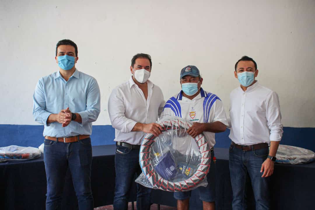 Los kits constaron de 1 llanta, 3 litros de aceite, 1 chaleco reflejante y 1 recámara, que llegaron a través del Programa de Fortalecimiento Social y MicroYuc que beneficio a 45 personas que se dedican a ser taxistas en la Comisaría.