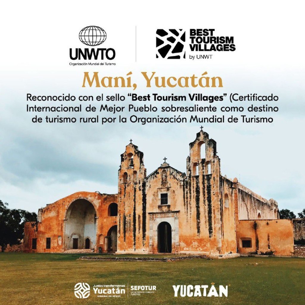 Madrid, España, 2 de diciembre del 2021. – Yucatán recibió el distintivo de Best Tourism Villages de la Organización Mundial del Turismo (OMT) para el Pueblo Mágico de Maní, distinción de prestigio internacional que reconoce a este destino como un ejemplo de turismo rural con valores culturales y naturales reconocidos, producto de las buenas prácticas que impulsa el Gobernador Mauricio Vila Dosal dentro de la política turística sostenible.