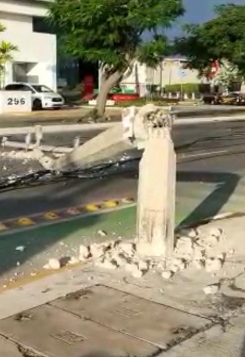 Este viernes 03 de diciembre a las 03:34 horas, un trailer circulando en la Av. Prolongación Paseo de Montejo de la ciudad de Mérida, Yucatán, provoca líneas reventadas y 5 postes caídos tras chocar contra infraestructura de CFE.