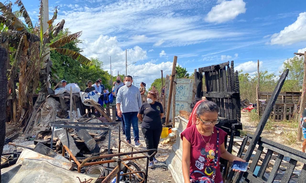 Mérida, Yucatán a 5 de diciembre de 2021.- La administración municipal mantiene un puntual seguimiento en el caso de las ocho familias de la comisaría de Dzununcán que perdieron sus viviendas a consecuencia de un incendio, en donde desde el primer día pusimos a su disposición todos los programas y servicios que tenemos para no dejarlos en una situación de vulnerabilidad, afirmó el Alcalde, Renán Barrera Concha.