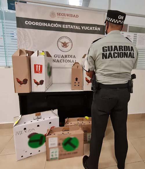paquetería de la terminal aérea, se localizaron ocho cajas de cartón, con las aves