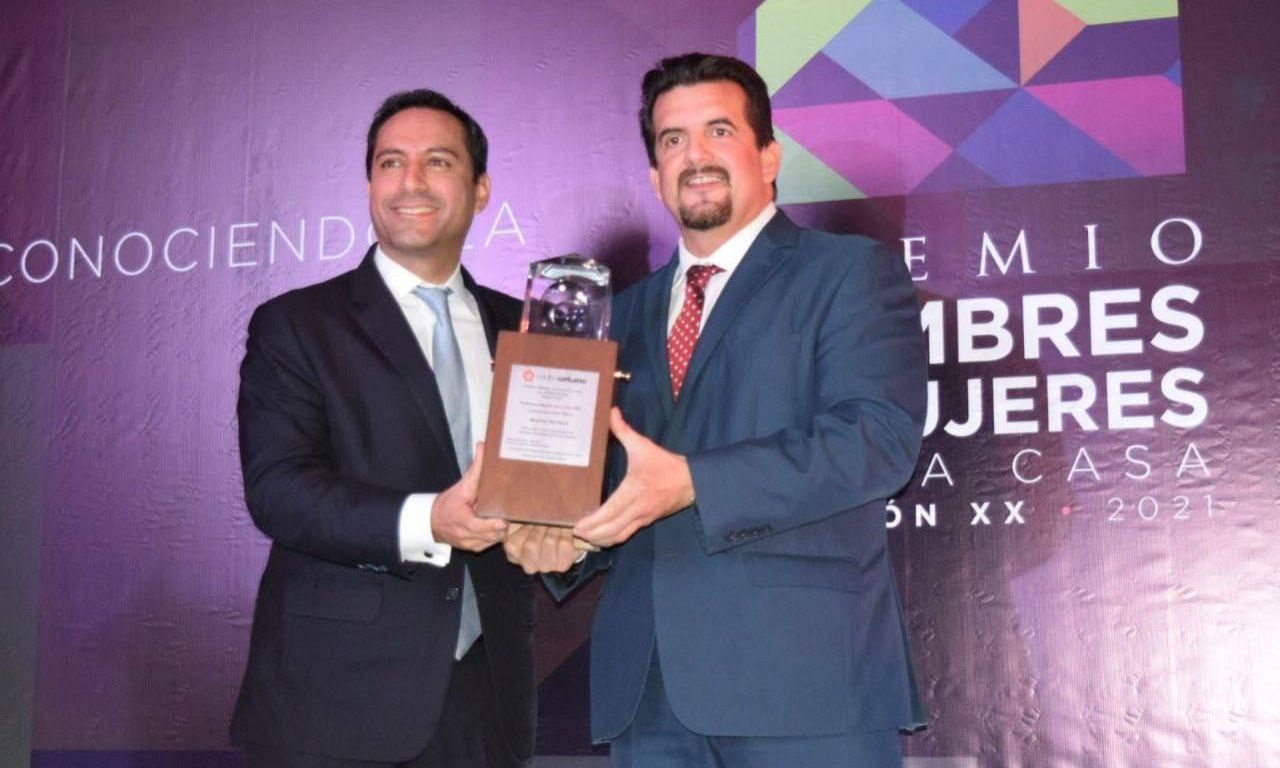 Ciudad de México, 8 de diciembre de 2021.- El Gobernador Mauricio Vila Dosal recibió anoche el premio Hombres y Mujeres de la Casa, que otorga la firma editorial Centro Urbano, especializada en los sectores de la construcción, arquitectura e inmobiliario, en reconocimiento a su contribución para impulsar acciones de vivienda, que mejoren la vida de las familias yucatecas.