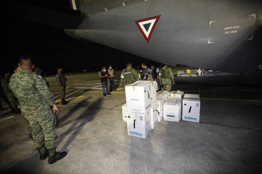 Acompañado del coordinador estatal de Vacunación, capitán de Corbeta Carlos Gómez Montes de Oca, Díaz Sánchez constató la descarga de las vacunas e insumos, a cargo del personal del Ejército, las cuales se colocó en un camión thermoking de la dependencia, para luego trasladarlas al almacén estatal, desde donde se distribuirán hacia los lugares para aplicarlas.