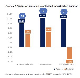 -De acuerdo con las cifras más recientes del Indicador Mensual de la Actividad Industrial por Entidad Federativa (IMAIEF) proporcionadas por el INEGI, el crecimiento del sector industrial en Yucatán supera al promedio nacional.